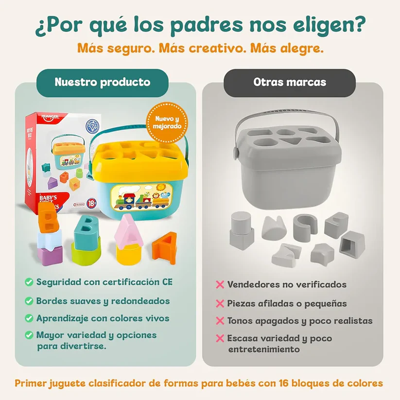 🧱 16 Bright & Chunky Blocks – Easy-to-grip blocks in various shapes and colors for safe, hands-on fun.