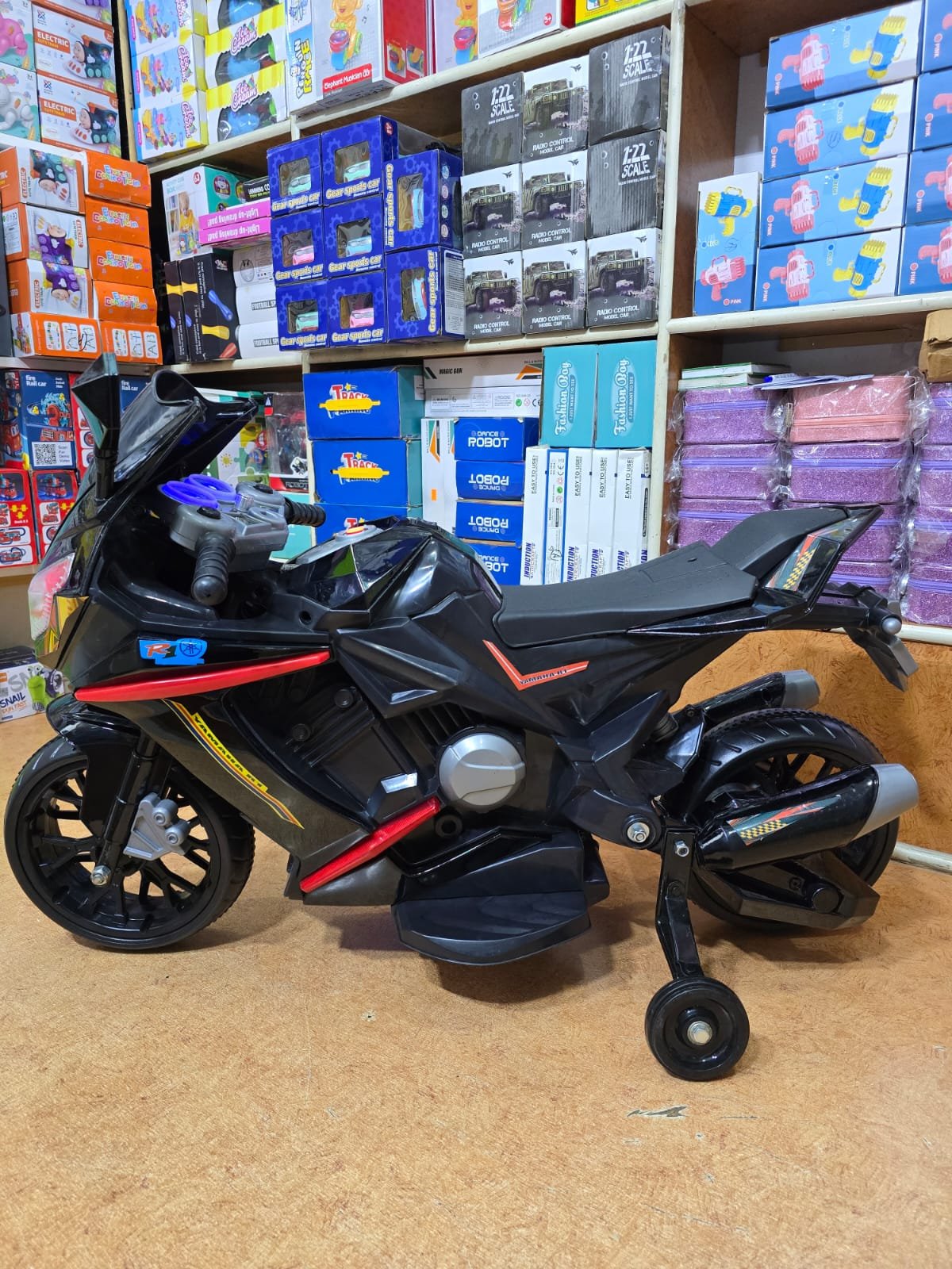 The **Electric Bike for Kids** is the perfect combination of fun, adventure, and safety for young riders. Designed with an ergonomic frame, it ensures a comfortable riding experience while promoting motor skills and balance development. Powered by a rechargeable battery, this bike offers smooth acceleration with an easy-to-use throttle, allowing kids to feel the thrill of riding like a pro. It also features durable all-terrain tires, making it suitable for both indoor and outdoor adventures. The electric bike includes sturdy safety features like a stable design, soft-grip handles, and speed control, ensuring parents can have peace of mind while their kids enjoy their ride. Complete with vibrant colors and a sleek, sporty look, this electric bike is ideal for encouraging active play and building confidence in young riders. Suitable for kids aged 3 years and up.