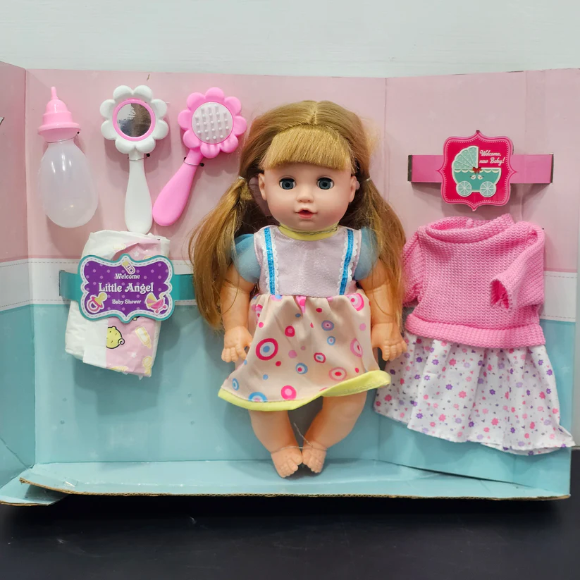 Shop My Baby My Sweet Doll at thekidsland.store – Includes 16 sounds, feeder, mirror, comb, pamper & dress. Helps kids develop imagination & coordination. Order now!