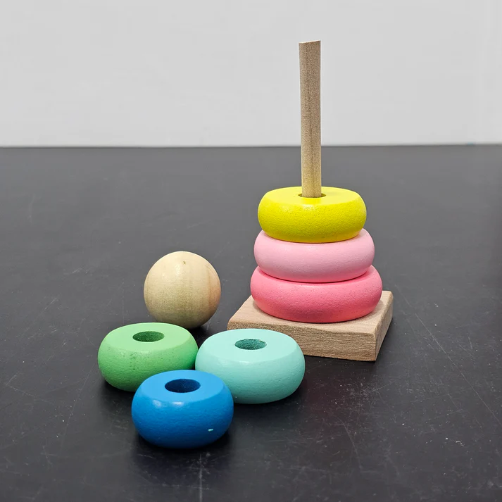 Each ring is perfectly sized for little hands, encouraging kids to stack from largest to smallest. Whether your child is learning colors or developing coordination, the Rainbow Tower provides a fun and stimulating experience every time.