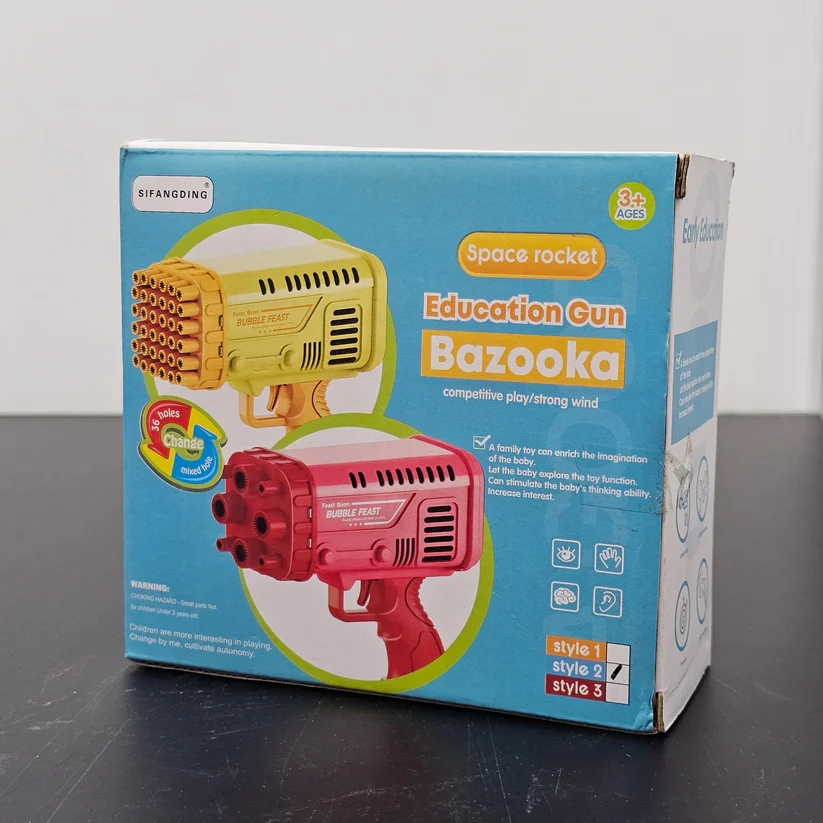 Blast off into fun with the Space Rocket Educational Bazooka Gun, only at thekidsland.store! Designed to inspire imagination and competitive play, this toy combines a futuristic rocket-style design with strong wind-powered bubble or foam launching action—perfect for active kids age 3 and up.