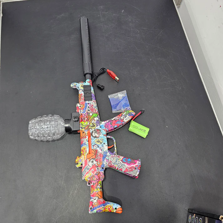 Get ready for intense action with the Superior Performance High-Speed Electric Crystal Pellet Gun MP5 Submachine Gun, now available at TheKidsLand.store! Perfect for kids aged 8 and above, this toy blaster brings thrilling shooting play with soft crystal water pellets that burst on impact — mess-free and full of fun!