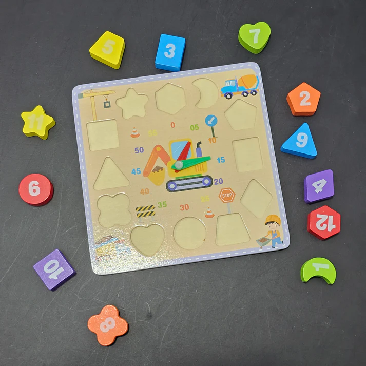 The Wooden Clock with Blocks is the perfect toy for teaching kids how to tell time while developing number recognition, shape matching, and color awareness—all in one engaging, hands-on activity. Available now at TheKidsLand.store, this clock makes early learning both fun and effective!