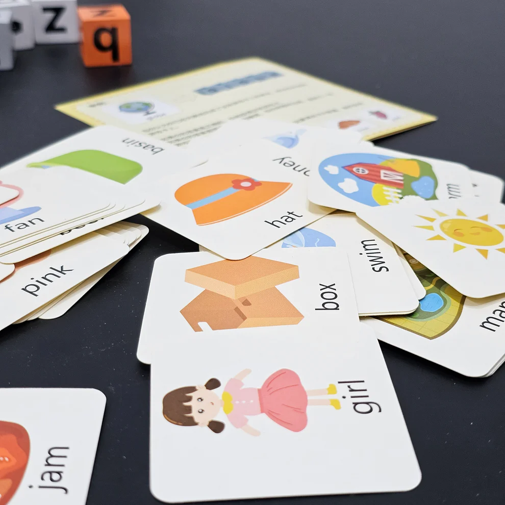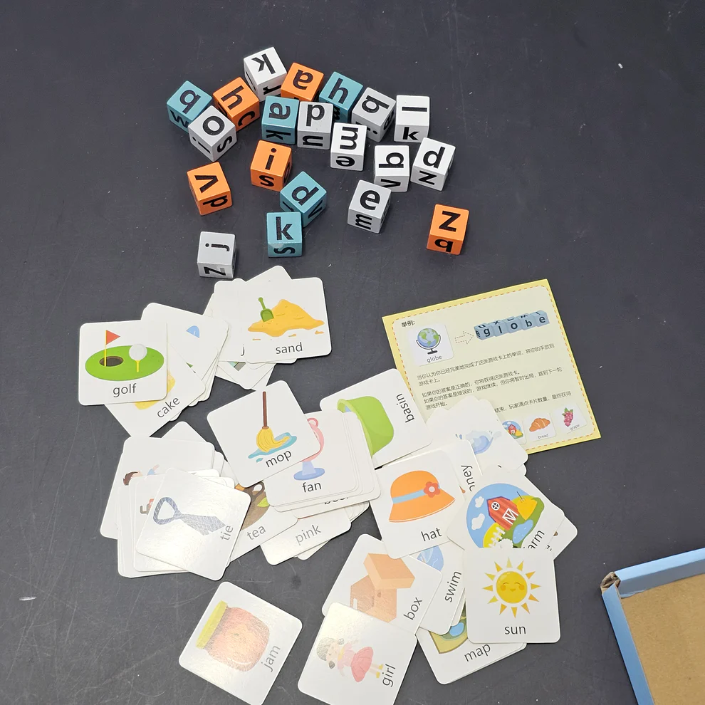 🔤 Complete Set – Includes English word cards with images + letter blocks